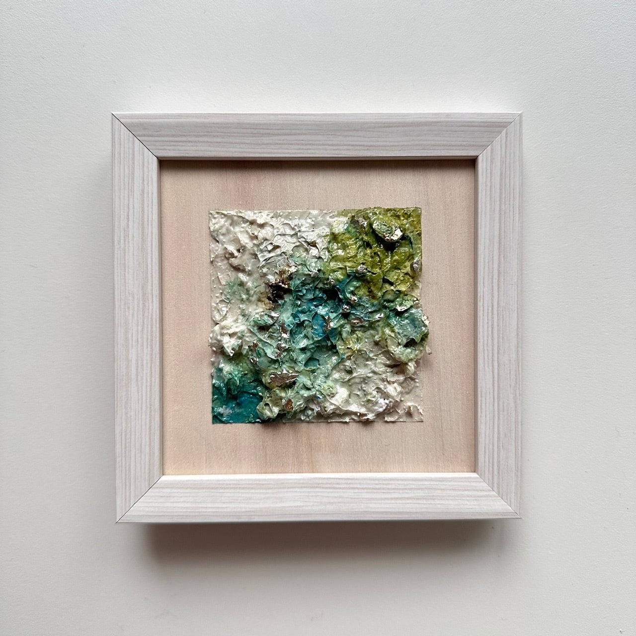 オリーブグリーンとキングスブルーを基調に制作した、ミニサイズの原画作品です。