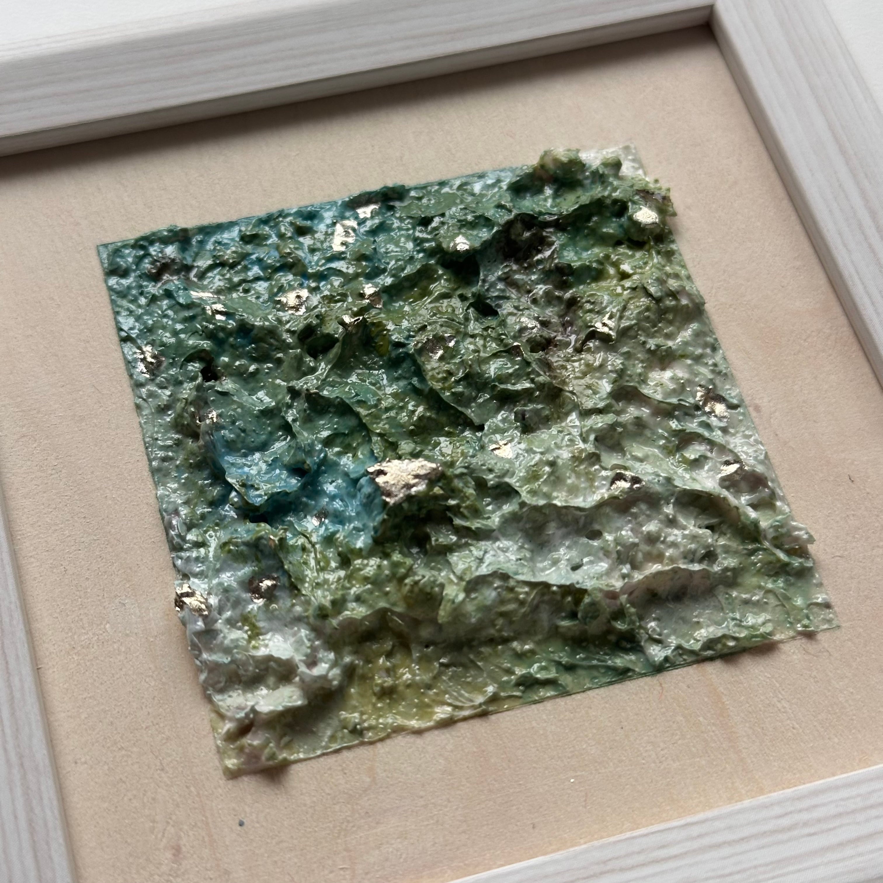 ミニ原画|卓上・玄関に飾れる抽象画|オリーブグリーン×キングスブルー #3